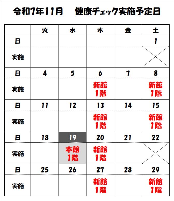 諸事情によって、健康チェックのスケジュールが変更される可能性があります。その際はホームぺージ、フェイスブック、LINE等でご連絡いたします。ご了承ください。
