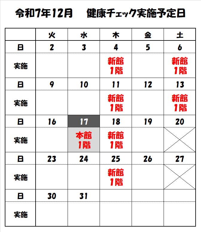 諸事情によって、健康チェックのスケジュールが変更される可能性があります。その際はホームぺージ、フェイスブック、LINE等でご連絡いたします。ご了承ください。