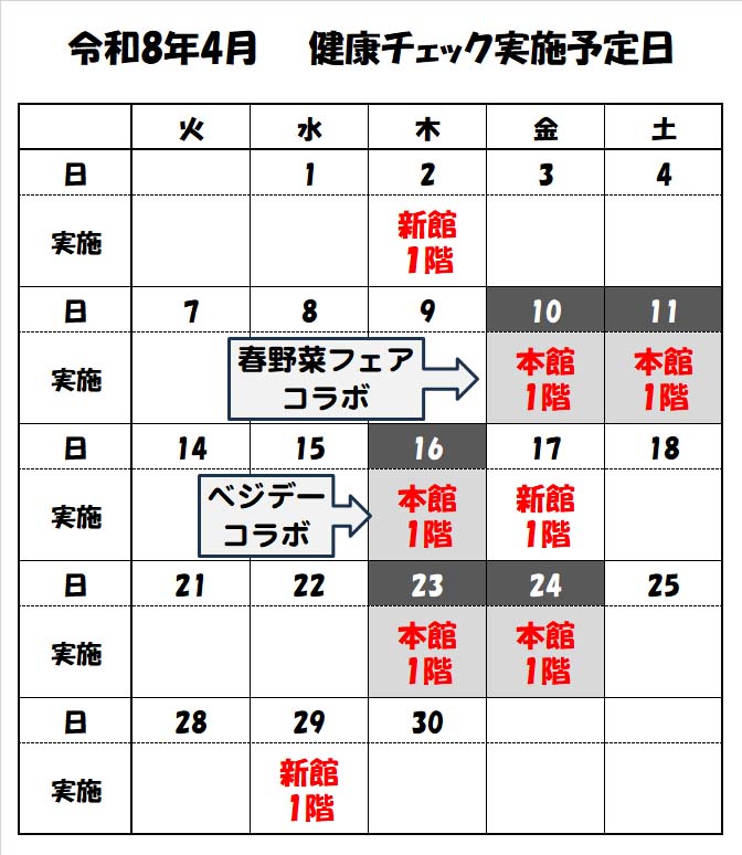 2026年3月と4月の健康チェックの詳細を下記に示します。
