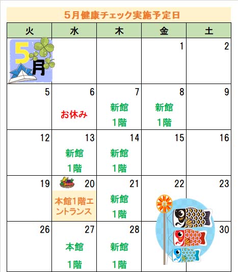 2026年5月と6月の健康チェックの詳細を下記に示します。
